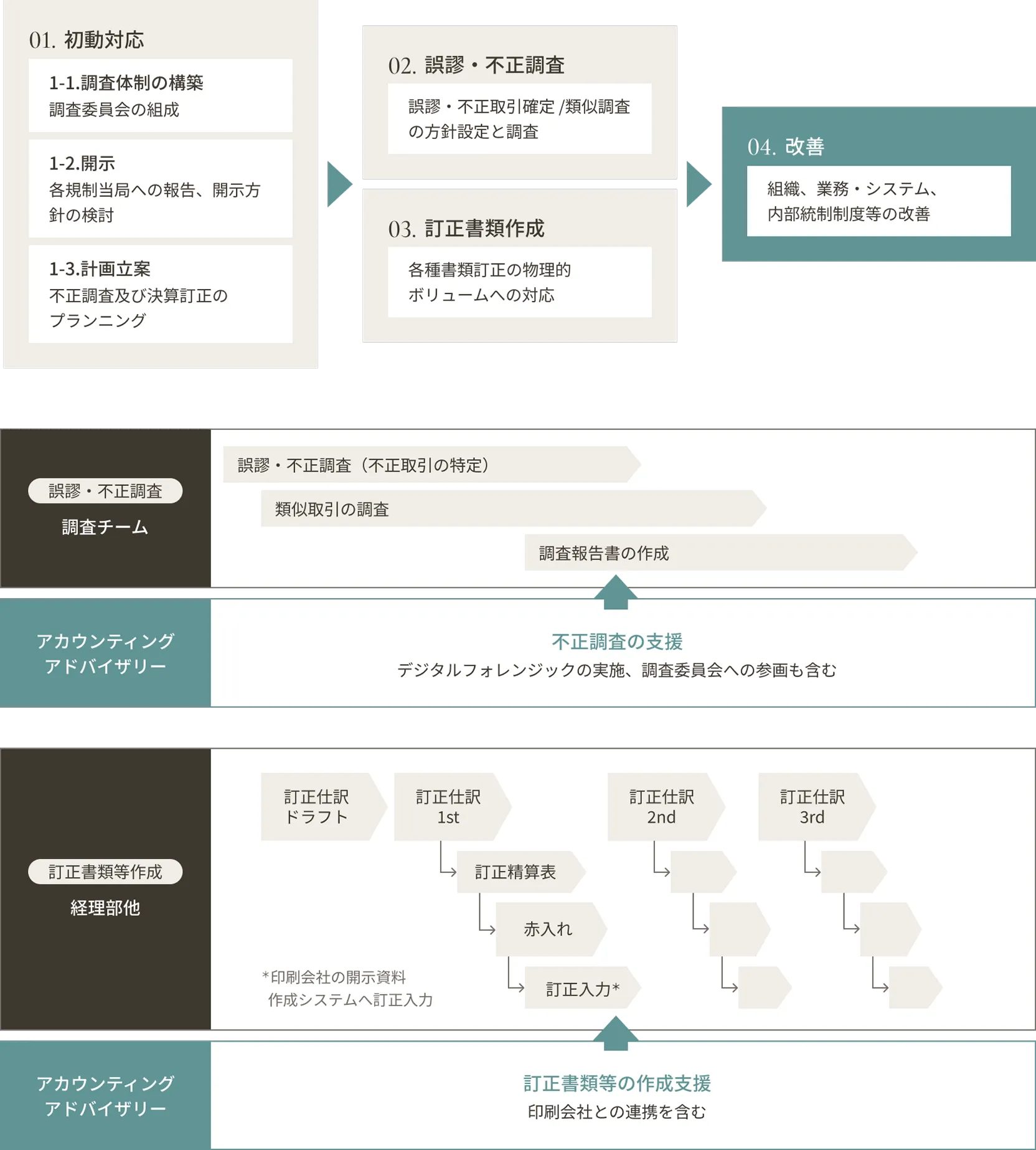 当該基準の適用開始当初から数多くの案件に携わってきた経験を活かし、複雑な誤謬訂正や不正対応においても、効果的かつ効率的な支援を提供します。